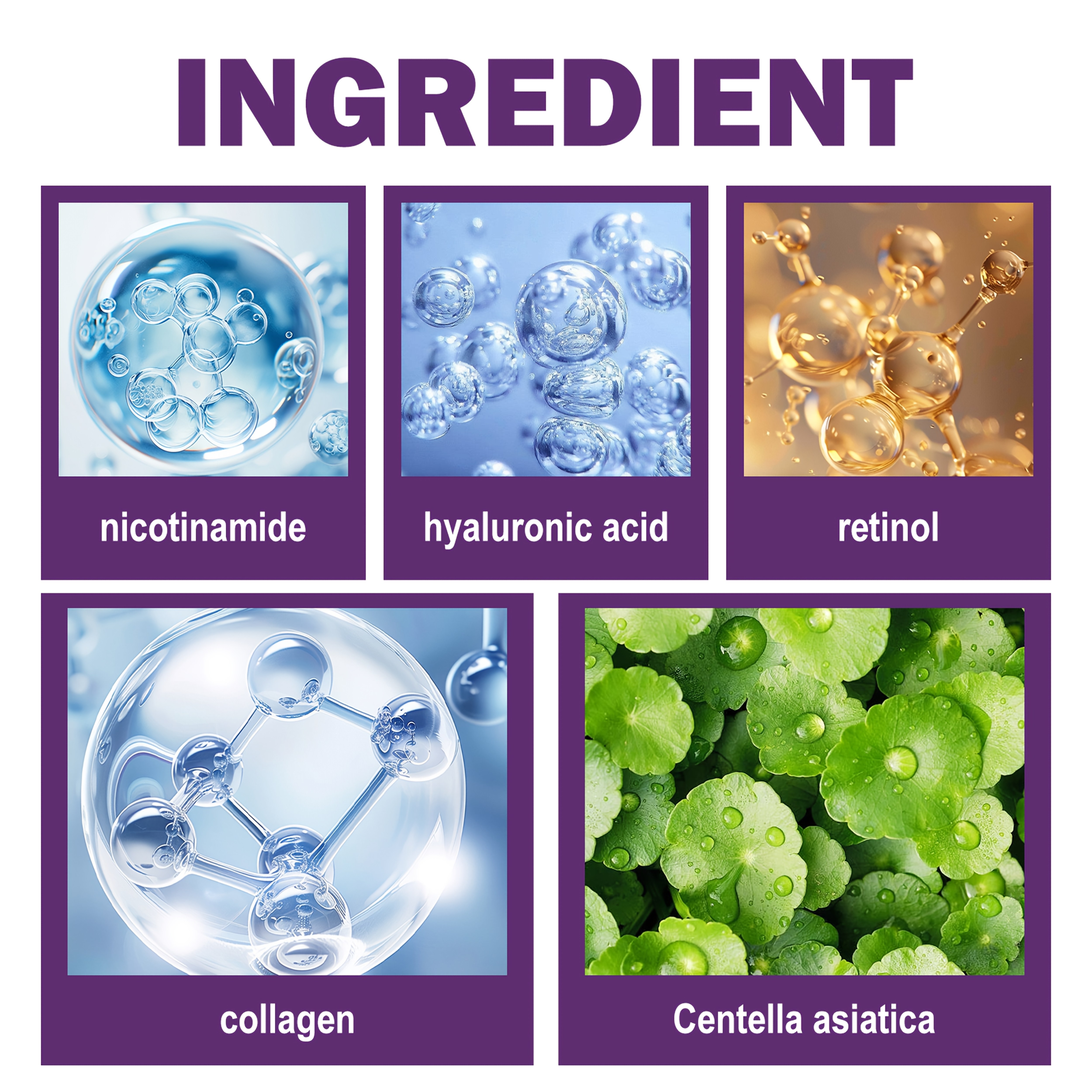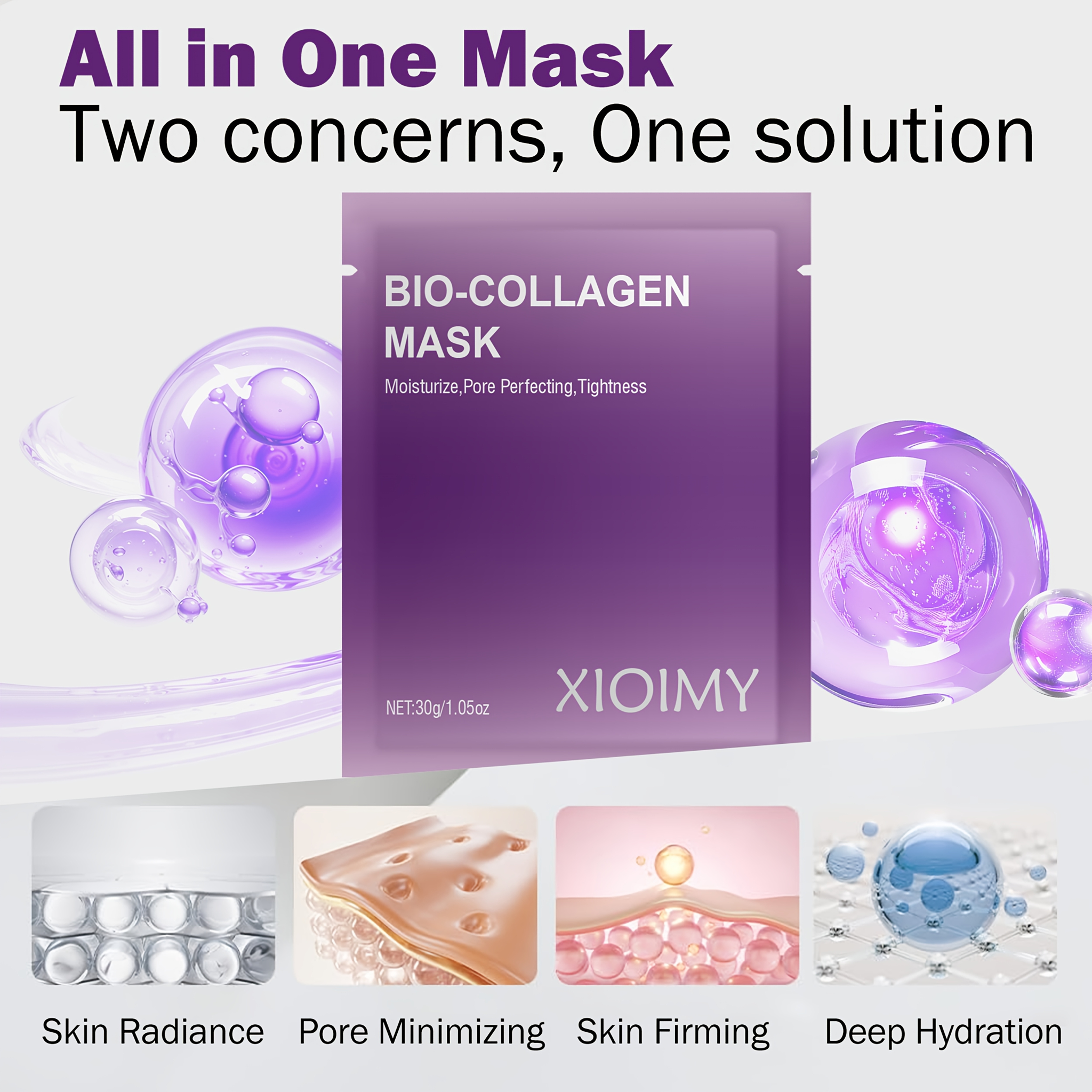 6pcs Purple Bio-Collagen Mask - Alcohol-Free Deep Hydration & Pore Minimizing, 30g/1.06oz, Hypoallergenic for All Light Beige Types, Brightening & Tightening, Alcoholfree Skincare, Sleek Packaging, Alcoholfree Skincare